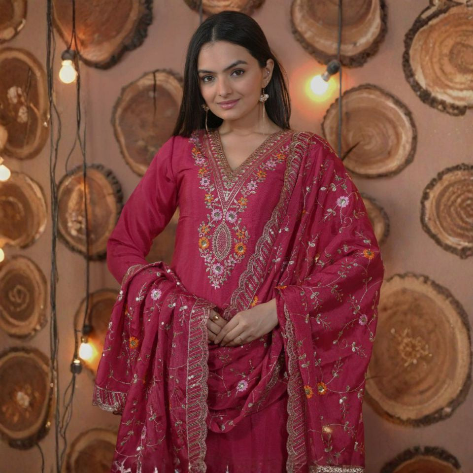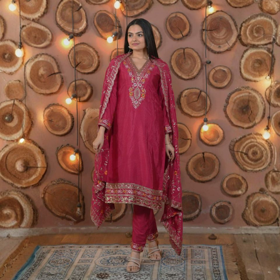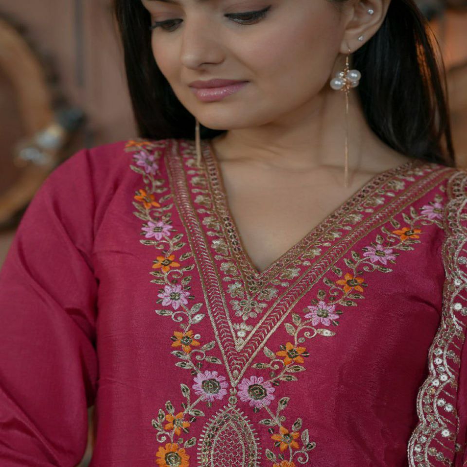 | Dupatta Fabric | Chinon with Heavy Multiple Sequence Embroidery Work |