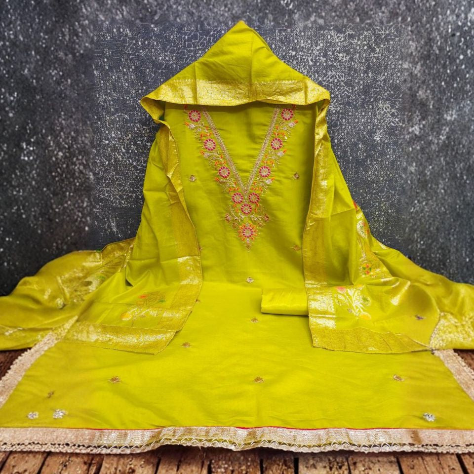| Top Fabric | PV Roman Silk with Kodding Sequence Work |
