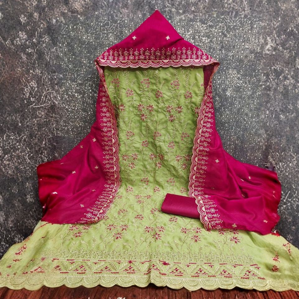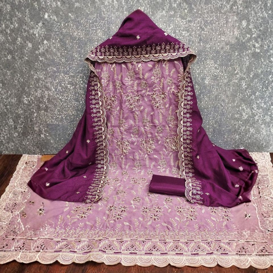 Elegant Vichitra Silk allover work top, paired with a Santoon bottom and matching Vichitra Silk dupatta.
